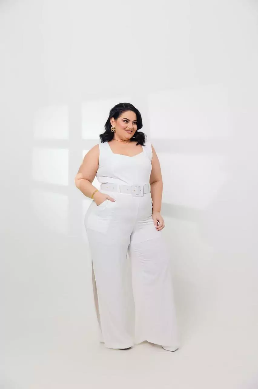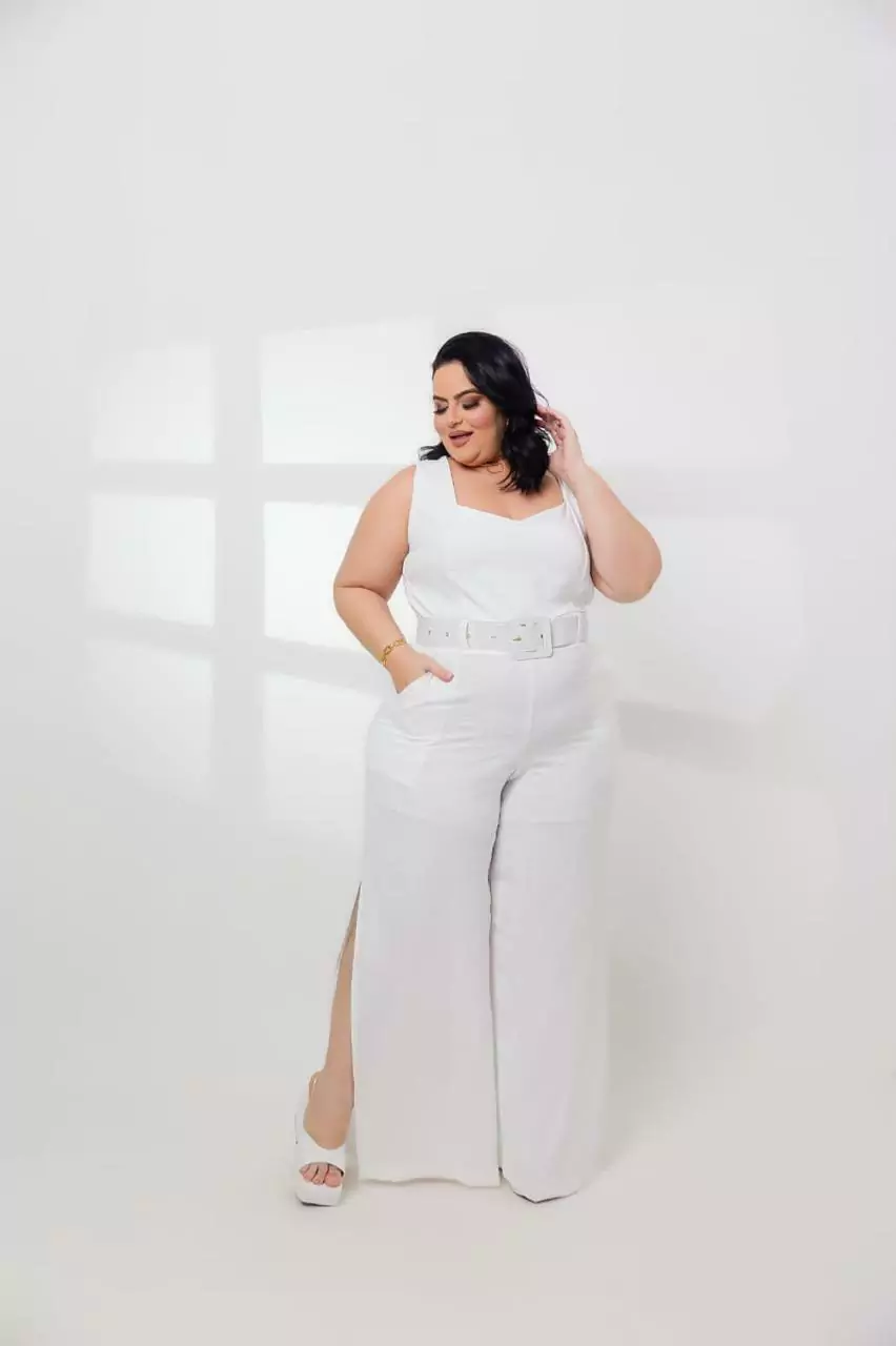 | Tecido: | Tecido do macacão: crepe duna Tecido do forro: cacharrel |
